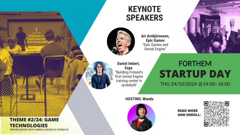 Interested in Unreal Engine? Then join us at the FORTHEM Startup Day on Game Technologies on 24.10. 2:00 PM to 4:00 PM EET at the Digi & Game Center (Matarankatu 2, 40100 Jyväskylä) or via Zoom.Keynote speakers: